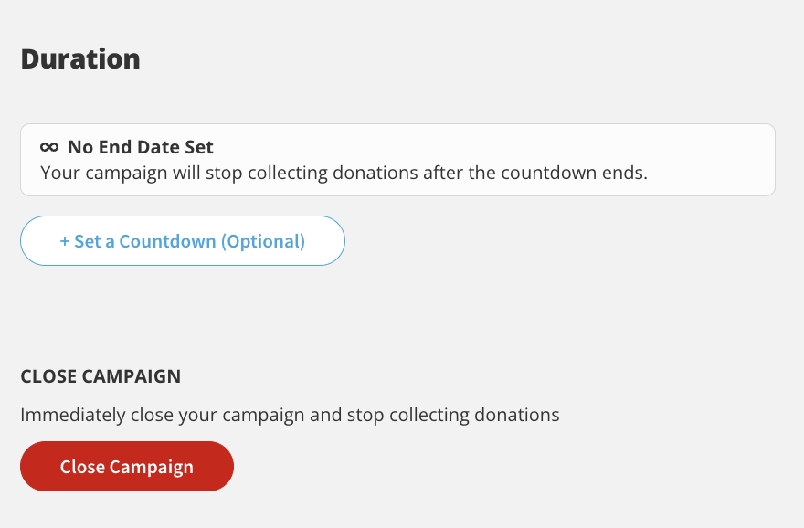 - On this page, you can set a countdown for your campaign to end, or you can manually complete the campaign.